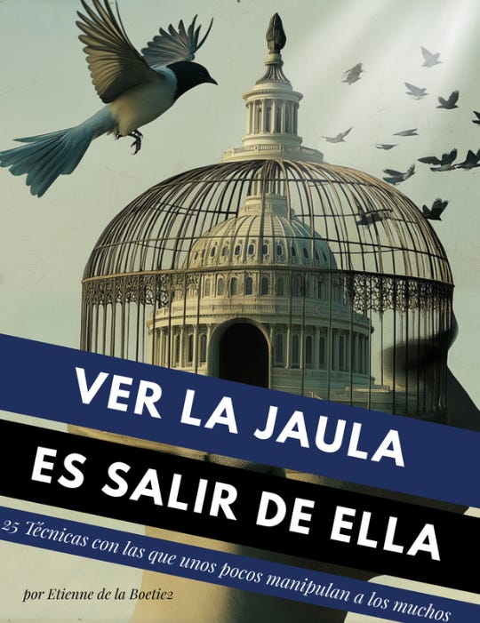 Pásate al nivel de pago de $50 al año y te enviaremos una edición gratuita en papel de la versión latinoamericana del nuevo libro de Etienne de la Boetie:Ver la jaula es salir de ella: 25 técnicas con las que unos pocos manipulan a los muchos, con el envío incluido si vives en los EE. UU. Si te encuentras en el extranjero, te daremos un crédito de $10 para el envío si aceptas pagar el resto.